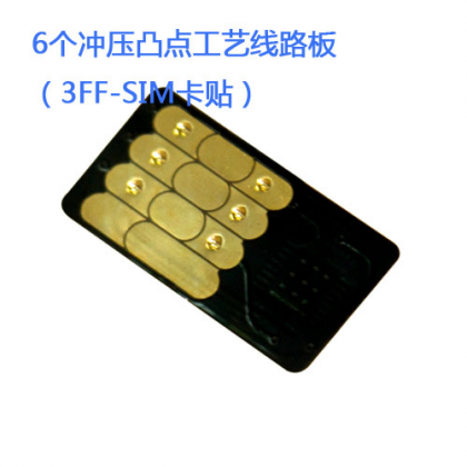 基于常規(guī)柔性線路板制造工藝,沉金表面工藝之上沖壓6個高度均勻,有一定抗壓強度的凸點,應用于3FF-SIM卡貼,可植入SI...